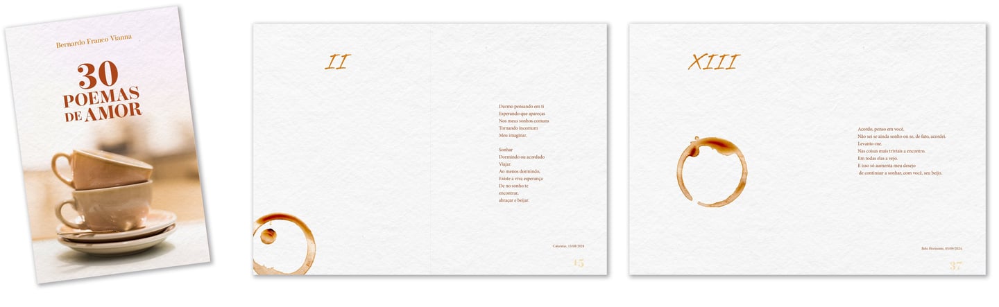 “30 Poemas de Amor”, de Bernardo Franco Vianna, é um livro que celebra o renascer dos afetos e a delicadeza do amor que chega mansinho depois da dor. Cada texto é um pequeno flagrante do amor que amadurece: o sonho que insiste em trazer a amada, o beijo que pede bis, o recomeço que não apaga o passado, mas o ressignifica, a certeza de que “a queda não é o fim, mas o início de outra caminhada”.