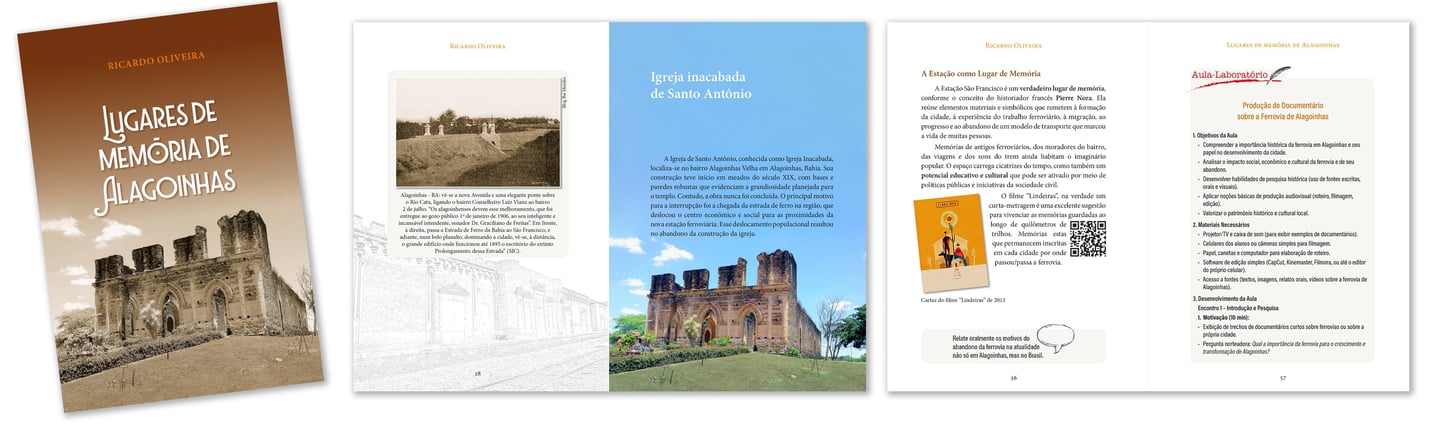 Desde a capa, a qualidade editorial se impõe: a criação e arte da capa combinam tipografia moderna com cores que remetem ao patrimônio cultural de Alagoinhas, criando um convite visual que destaca o tema central da obra. No interior, o livro revela um projeto gráfico pensado para o uso em sala de aula e para a leitura autônoma: o interior apresenta layout limpo e bem estruturado, com capítulos numerados e margens que facilitam a leitura e a inserção de atividades didáticas.