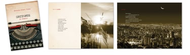 A escolha tipográfica reforça o tom íntimo e contemporâneo da obra: a tipologia de leitura, clara e elegante, garante conforto visual, enquanto os elementos de destaque preservam a sobriedade e conferem unidade estética, sem disputar protagonismo com a palavra poética. Trata-se de um projeto em que forma e conteúdo conversam o tempo todo.